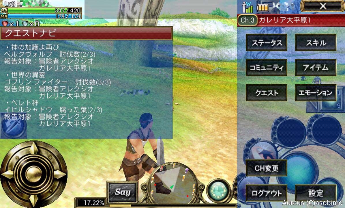 画面右上の[MENU]を開くと、画面左側の透過ウインドウに受注したクエストの進捗が表示されます。